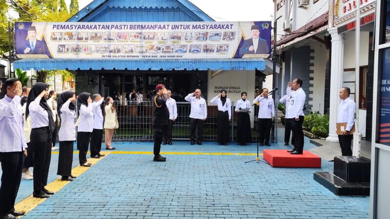 SALATIGA | jejakkontruksi.com – Momentum Hari Kesaktian Pancasila 2025 dimaknai serius oleh Rumah Tahanan Negara (Rutan) Salatiga. Rabu (01/10/2025), seluruh jajaran pegawai Rutan mengikuti upacara yang digelar di halaman utama dengan penuh khidmat. Kepala Rutan Salatiga, Anton Adi Ristanto, bertindak langsung sebagai inspektur upacara.