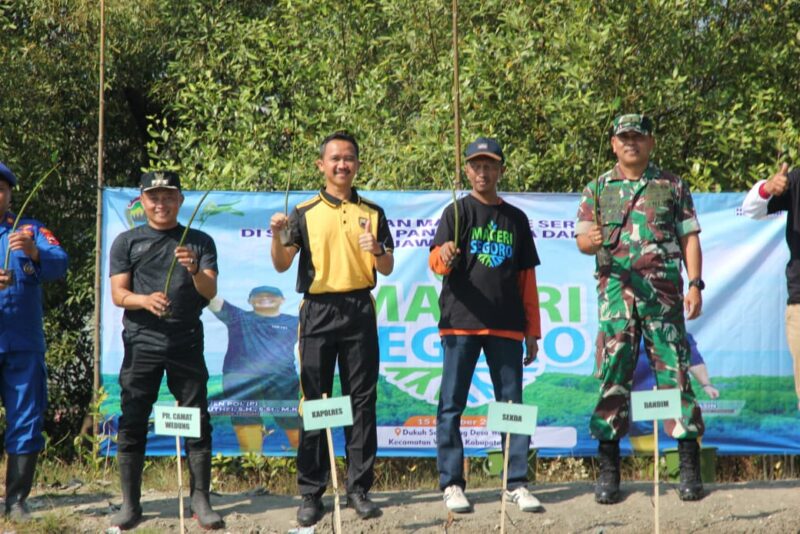 Demak|JejakKontruksi.com – Kepolisian Resor (Polres) Demak, Jawa Tengah, bersama Pemerintah Kabupaten (Pemkab) Demak aktif melaksanakan program “Mageri Segoro Provinsi Jawa Tengah” dengan menanam 6.000 bibit mangrove di sepanjang pesisir pantai Kabupaten Demak, Rabu (15/10/2025).