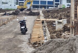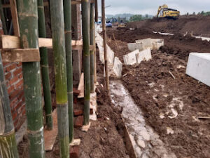 Kondisi tanah dasar juga terlihat tidak dipadatkan sesuai metode pemadatan standar, sehingga berpotensi memperpendek umur layanan saluran drainase dan menimbulkan kerusakan dini.