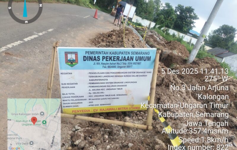 UNGARAN |JEJAKKONTRUKSI.COM – Dugaan pelanggaran spesifikasi kembali mencoreng proyek pemerintah di Kabupaten Semarang. Peningkatan saluran di Jalan Arjuna, Kalongan, Ungaran Timur, yang menelan anggaran Rp 358.252.000 dari APBD 2025, kini disorot tajam setelah muncul temuan bahwa U-ditch dipasang tanpa lantai kerja (benol).