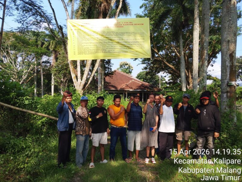 KABUPATEN MALANG | JEJAKKONTRUKSI.COM – Langkah tegas diambil Kantor Hukum Muslimlaw & Partners dengan mengumumkan penguasaan dan pengawasan atas tanah objek landreform seluas 1.036 hektar di Jawa Timur. Lahan bekas Perkebunan Karet Kali Telo tersebut kini berada di bawah kontrol hukum yang ketat, Rabu (15/4/2026).